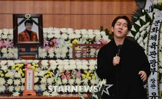 이날 고인의 '영원한 라이벌', 태진아는 영결식 말미 마이크를 잡곤 "김수찬이 (송)대관 형 흉내를 많이 했다. 어떤 날은 형이랑 식당에서 TV를 보고 있는데, (김)수찬이가 흉내를 내는 장면이 나왔었다. 그때 형이 깔깔깔 웃으시며 '애가 참 괜찮지? 저 놈은 크게 될 거다. 내 흉내를 겁나 하니까' 하셨었다"라는 추억을 떠올렸다.
