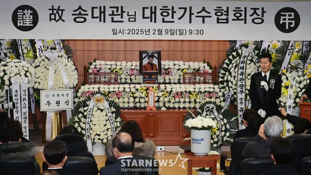 연예방송故송대관 영결식 엄수[★포토]발행 : 2025.02.09 ・ 11:41이동훈 기자가수 태진아가 9일 오전 서울 종로구 서울대학교병원 장례식장에서 엄수된 '국민 트로트 가수' 故송대관의 발인제에서 추도사를 하고 있다. /2025.02.09<저작권자 © 스타뉴스, 무단전재 및 재배포 금지>송대관별세빈소발인서울엄수추천 기사이동훈 기자기자홈좋아요 연예-방송의 인기 급상승 뉴스연예-방송의 최신 뉴스