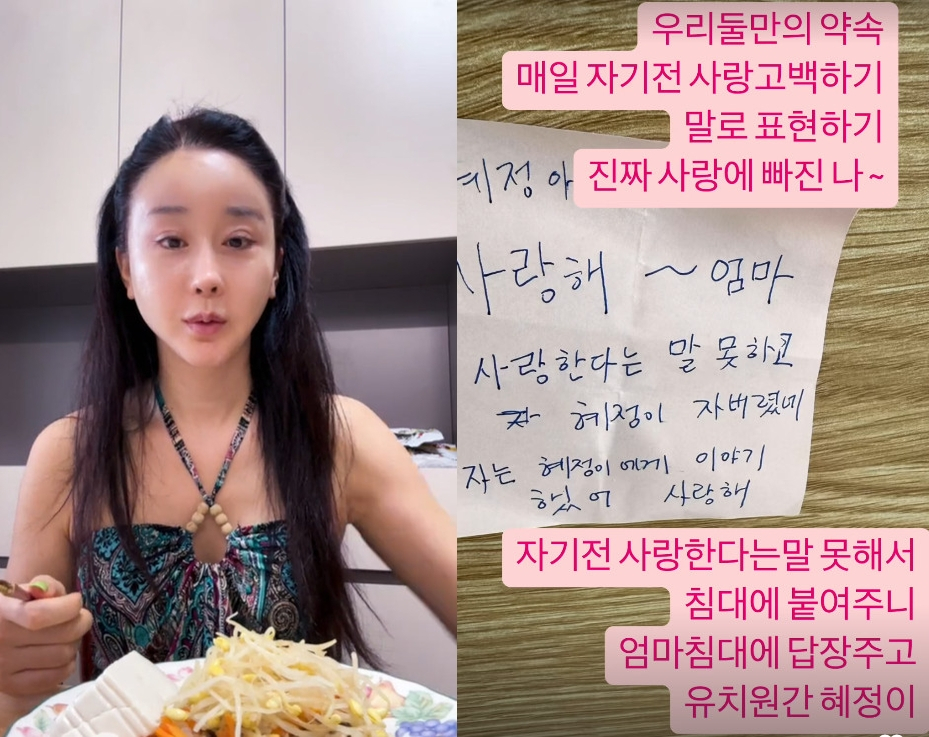 그가 공개한 쪽지에는 "혜정아, 사랑해. 엄마 사랑한다는 말 못하고 혜정이 자 버렸네. 자는 혜정이에게 이야기했어 사랑해"란 내용이 담겨있다.