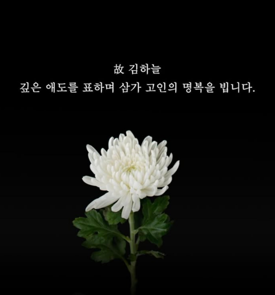 해당 사진에는 '고 김하늘. 깊은 애도를 표하며 삼가 고인의 명복을 빕니다'라는 글과 함께 국화꽃이 담겼다.