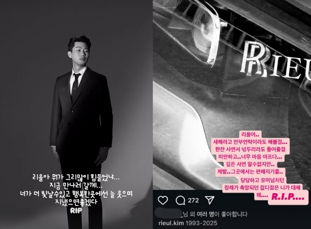 채은정은 12일 자신의 인스타그램에 "리을아. 새해라고 안부 연락이라도 해볼걸. 한 잔 사면서 넋두리라도 들어줄 걸. 미안하고, 너무 마음 아프다"라고 시작하는 글과 함께 고인의 인스타그램 게시물을 캡처해 올렸다. 고인의 최근 인스타그램 게시물에는 "1993-2025"이라고 적혀있다.