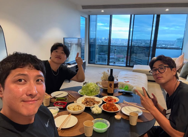 황재균은 18일 "호주 마지막 쉬기전날"이라는 글과 함께 자신이 소속된 kt 위즈 동료 오재일 우규민과 함께 식사를 하는 모습을 공개했다.