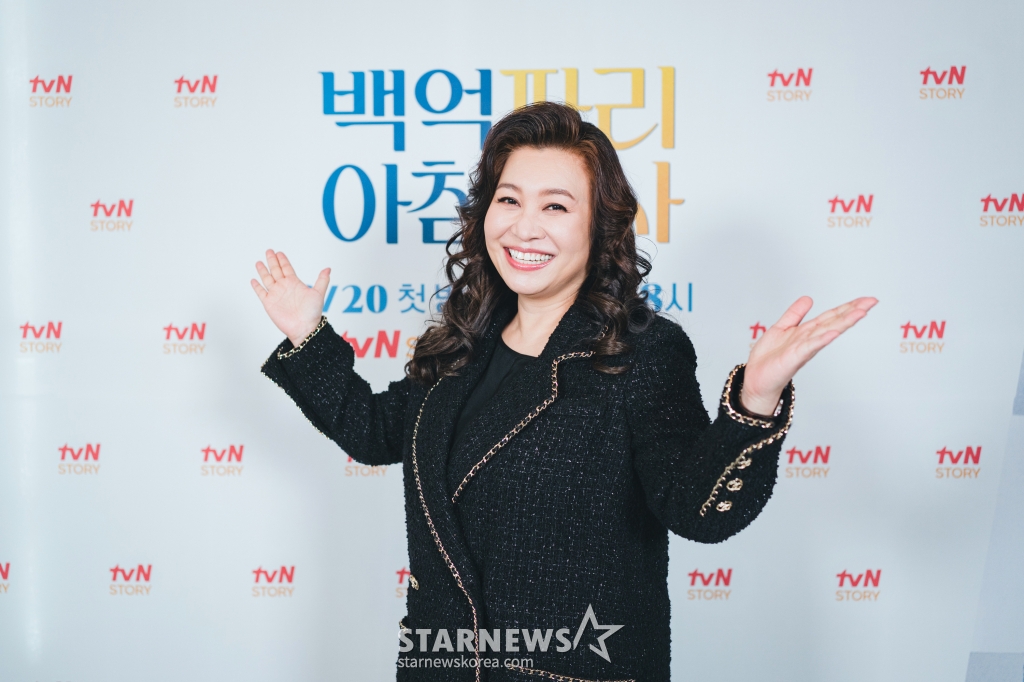 정신건강의학과 전문의 오은영이 20일 오전 온라인으로 진행된 tvN STORY '백억짜리 아침식사' 기자간담회에 참석해 포즈를 취하고 있다.