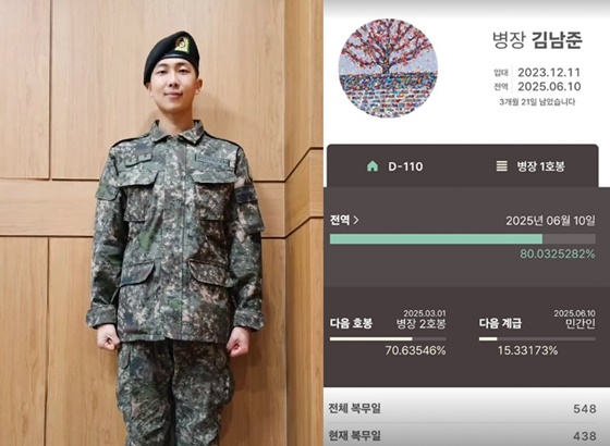 그룹 방탄소년단(BTS)의 멤버 RM이 전역 디데이를 셌다.