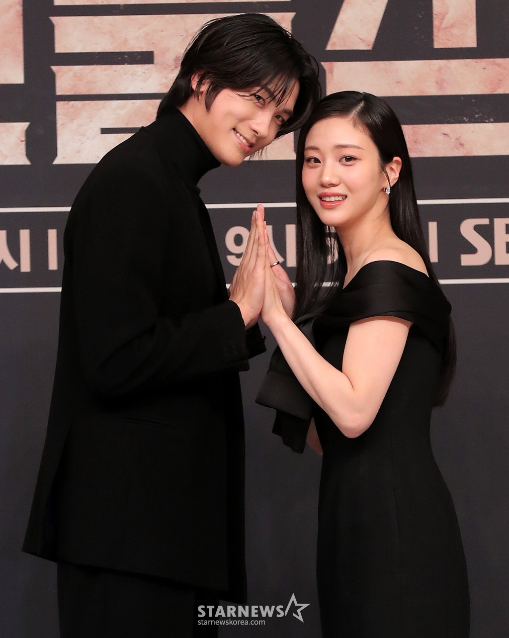 연예방송박형식-홍화연 '오랜만에 보는 앙드레김 피날레 포즈'[★포토]발행 : 2025.02.21 ・ 14:48김창현 기자배우 박형식, 홍화연이 21일 오후 서울 양천구 목동 SBS사옥에서 진행된 금토드라마 '보물섬' 제작발표회에 참석해 포즈를 취하고 있다.'보물섬'은 2조원의 정치 비자금을 해킹한 서동주(박형식 분)가 자신을 죽인 절대 악과 그 세계를 무너뜨리기 위해 모든 것을 걸고 싸우는 인생 풀베팅 복수전을 담은 작품이다. 2025.02.21<저작권자 © 스타뉴스, 무단전재 및 재배포 금지>보물섬박형식이해영홍화연앙드레김화연추천 기사김창현 기자기자홈좋아요 연예-방송의 인기 급상승 뉴스연예-방송의 최신 뉴스