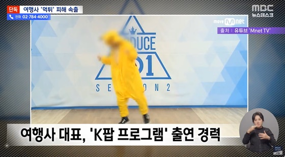 여행사 대표인 A 씨는 자신이 이른바 '바지사장'이라며 책임을 넘기고 있다고. 특히 '뉴스데스크' 측은 A 씨에 대해 "유명 K팝 예능 프로그램에 출연했다"라고 소개하며 2017년 '프로듀스101 시즌2' 속 한 인물을 모자이크 처리해 공개, 이목을 집중시켰다.