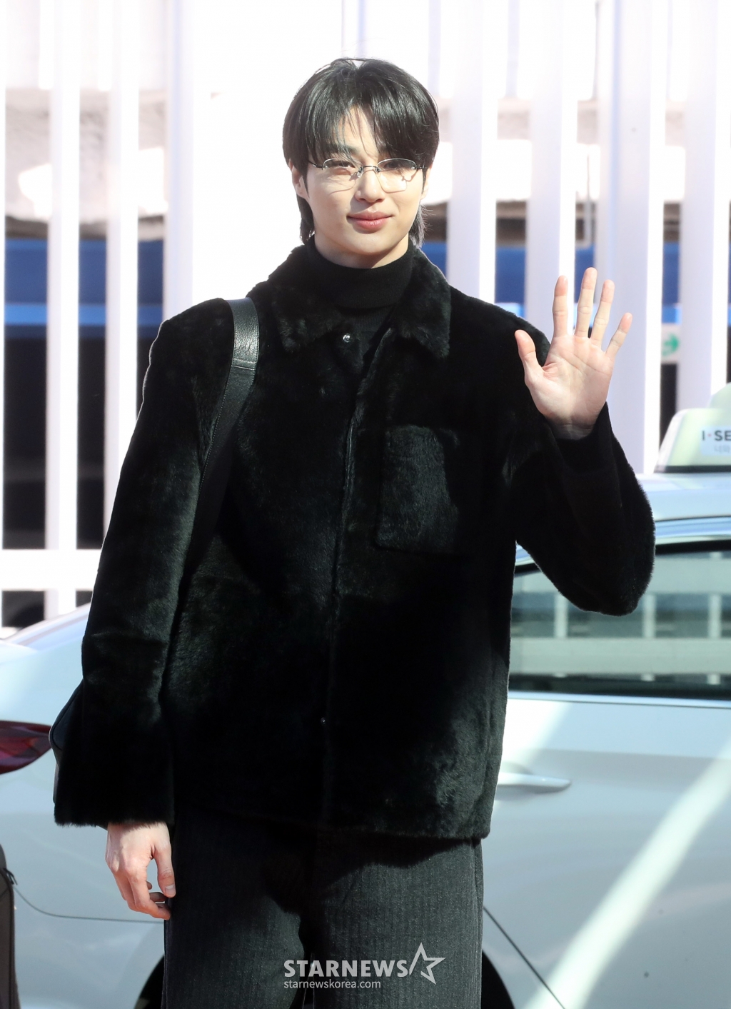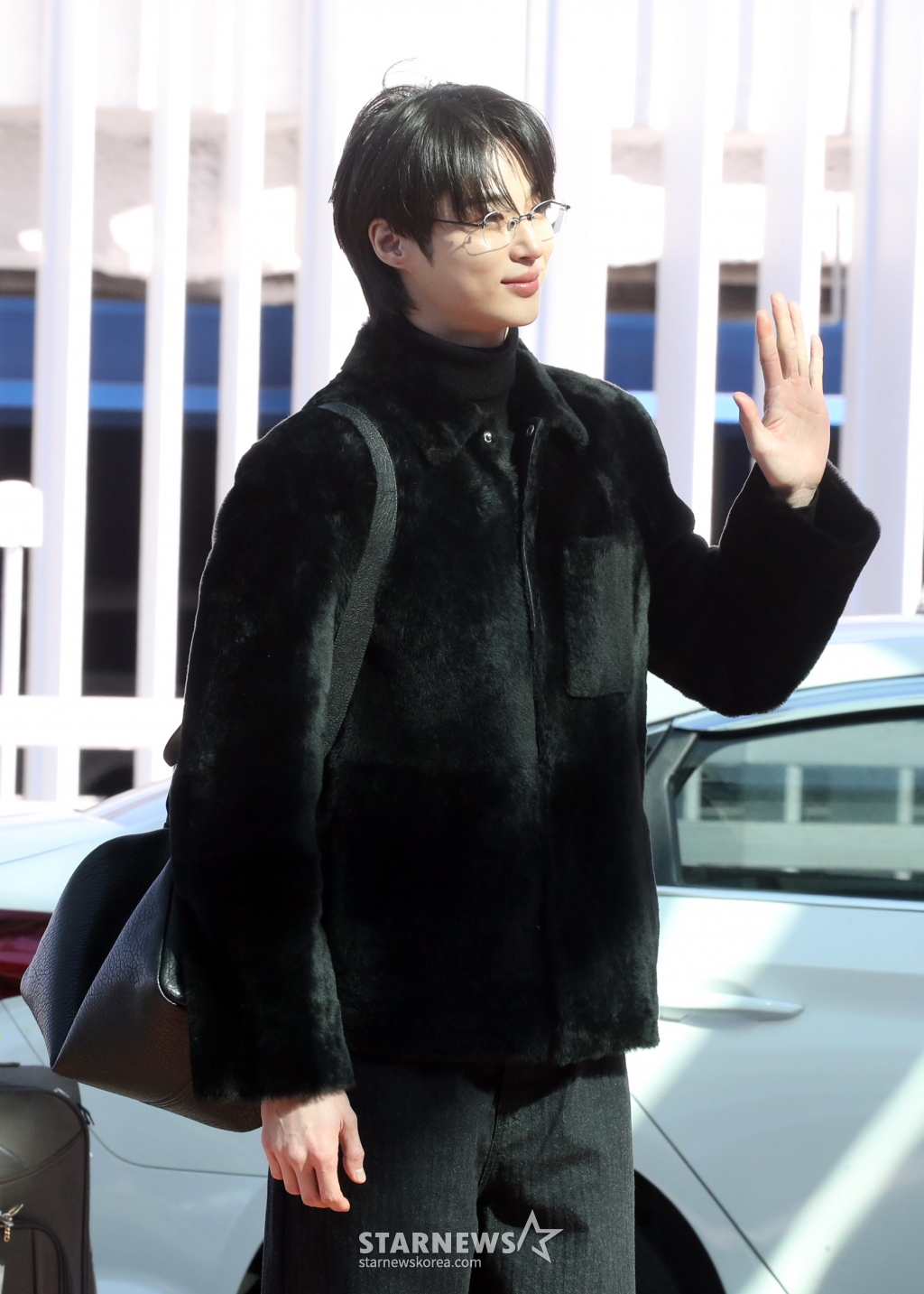 변우석은 24일 멀리서도 시선을 사로잡는 독보적인 피지컬과 완벽한 비주얼로 공항에 나타나 현장에 있는 많은 이들의 감탄을 자아냈으며, 모두 블랙으로 맞춘 공항패션은 그의 세련된 면모를 돋보이게 했다.