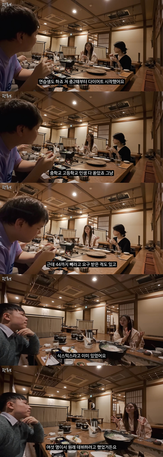 숙소에 도착한 이들은 저녁 식사를 위해 식당에 모였다. 이 자리에서 곽튜브는 송민영에게 "연습생 때 다이어트 많이 하냐. 나는 정말 일본에 와서 JYP 연습생을 만날 줄 몰랐다"고 말했다.