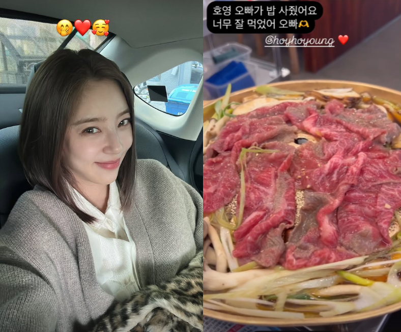 이어 "호영 오빠가 밥 사줬어요. 너무 잘 먹었어 오빠"라며 뮤지컬 배우 겸 방송인 김호영에 대한 고마운 마음을 전했다. 김호영은 출산을 앞둔 손담비에게 든든한 식사를 대접한 것으로 보인다.