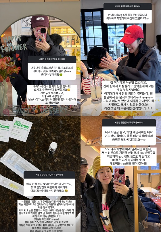 시험관 기간 동안 매일 맞아야 하는 배란 유도 주사에 대해서도 언급했다. 그는 "시험관은 다른 것보다 주사 맞는 것만 이겨내면 된다. 나는 처음부터 '어? 생각보다 안 아픈데?', "별거 아닌데?' 이 생각을 장착했다"며 "자기 최면 걸고 난 주사가 안 아픈 체질이라고, 복이 많다고 계속 생각했다 (사실은 아팠다)"고 전했다.