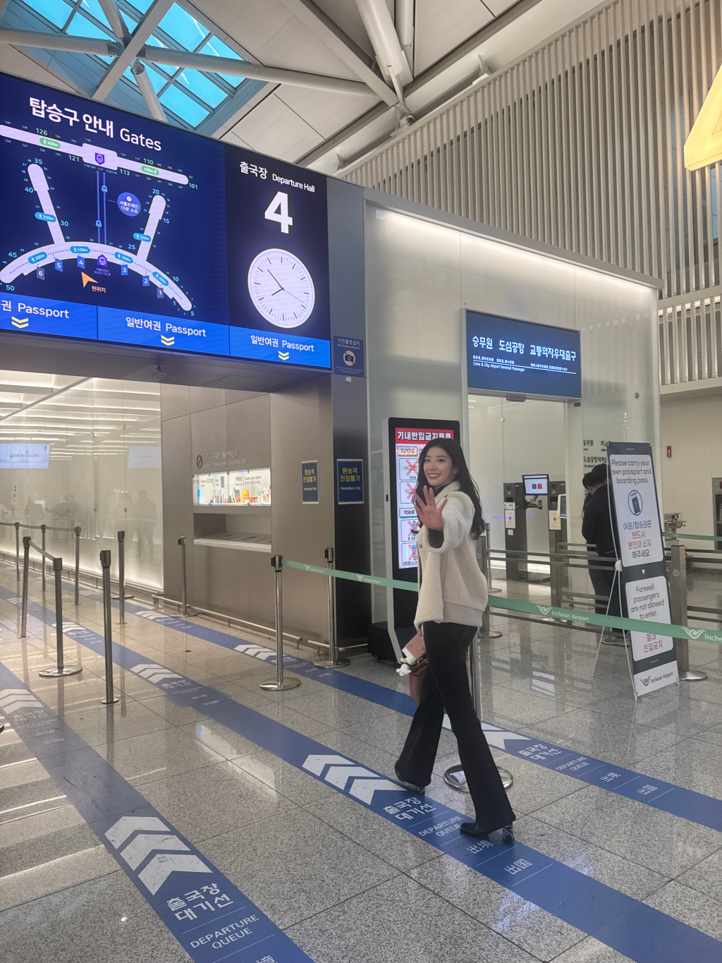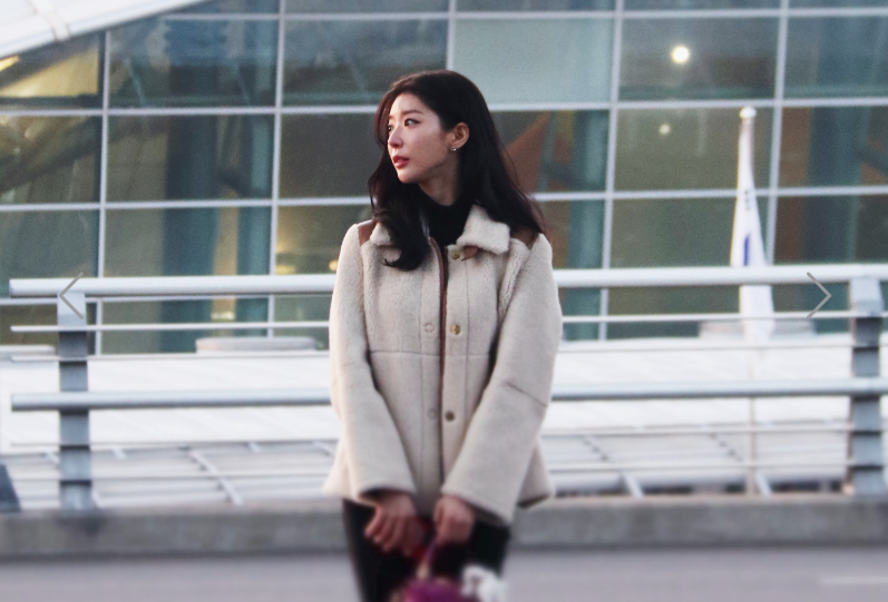 임사랑은 크림컬러의 일명 '뽀글이 재킷' 코디에 깔끔한 블랙 상하의를 매치해 마젠타 핑크 컬러의 미니백을 포인트로 들어 세련된 패션 감각을 선보였다. 이른 아침에도 불구하고 미스코리아 출신 다운 훤칠한 키와 시원시원한 이목구비로 미모를 자랑한 그는 특유의 사랑스러운 매력으로 존재감을 뽐냈다.