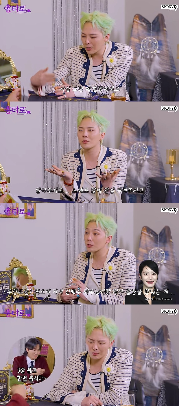 이에 이용진은 "하다 보면 흥미를 느낄 만한 요소가 있을 거다. 만족할 만한 좋은 결과로 이어질 것"이라고 타로점 결과를 밝혔고, 지드래곤은 "생각을 좋게 해봐야겠다"고 말했다.