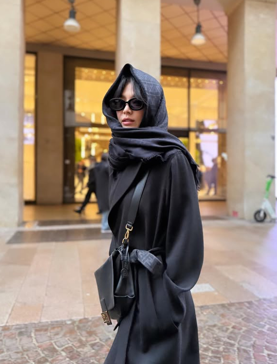 공개된 사진 속에는 밀라노 길거리를 걷고 있는 송혜교의 모습이 담겼다. 그는 스카프부터 코트, 가방, 선글라스까지 올블랙 패션을 뽐냈고, 상당 부분 가렸지만 빛나는 미모가 시선을 사로잡는다.