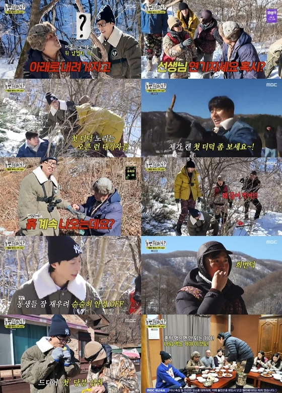 초보 심마니가 된 멤버들은 심마니 어르신과 함께 더덕 사냥을 시작했다. 눈 덮인 산을 오르는 것은 쉽지 않았다. 그 가운데 더덕 터를 발견했지만 땅이 꽝꽝 얼어 있었다. 유재석이 "드릴 가져와야 되는 거 아니에요?"라고 묻자 심마니는 "가서 가져와요"라고 멘트를 받아쳐 모두를 폭소케 했다. 심마니는 땅이 잘 안 파지자 "내가 봄에 캘 테니까 다른 데로 가!"라며 쉽게 포기했고, 주우재는 범상치 않은 캐릭터의 심마니에게 "선생님 혹시 연기자세요?"라고 의혹을 제기했다.