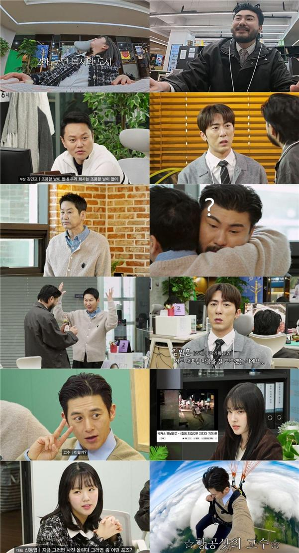 앞서 '사람 좋은 웃음'을 장착한 대표 신동엽의 예민한 심기를 건드리는 연봉 협상으로 '눈초리 찜질'만 제대로 받았던 주임 김원훈이 이번에는 "너도 한 번 당해봐라" 하는 심정으로 사원 차정원에게 복지 향상 요구를 떠넘기는 모습이 그려졌다. 그러나 정원이 극찬과 함께 복지 부장까지 등극해 오늘도 억울하게 '공식 샌드백' 역할을 톡톡히 한 원훈의 처지가 시청자들의 '현웃'을 유발했다.