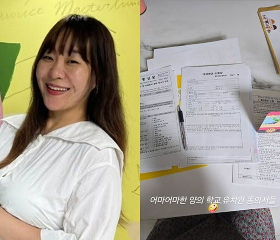 정주리는 4일 자신의 계정에 "어마어마한 양의 학교, 유치원 동의서들"이란 글과 함께 사진을 올렸다.