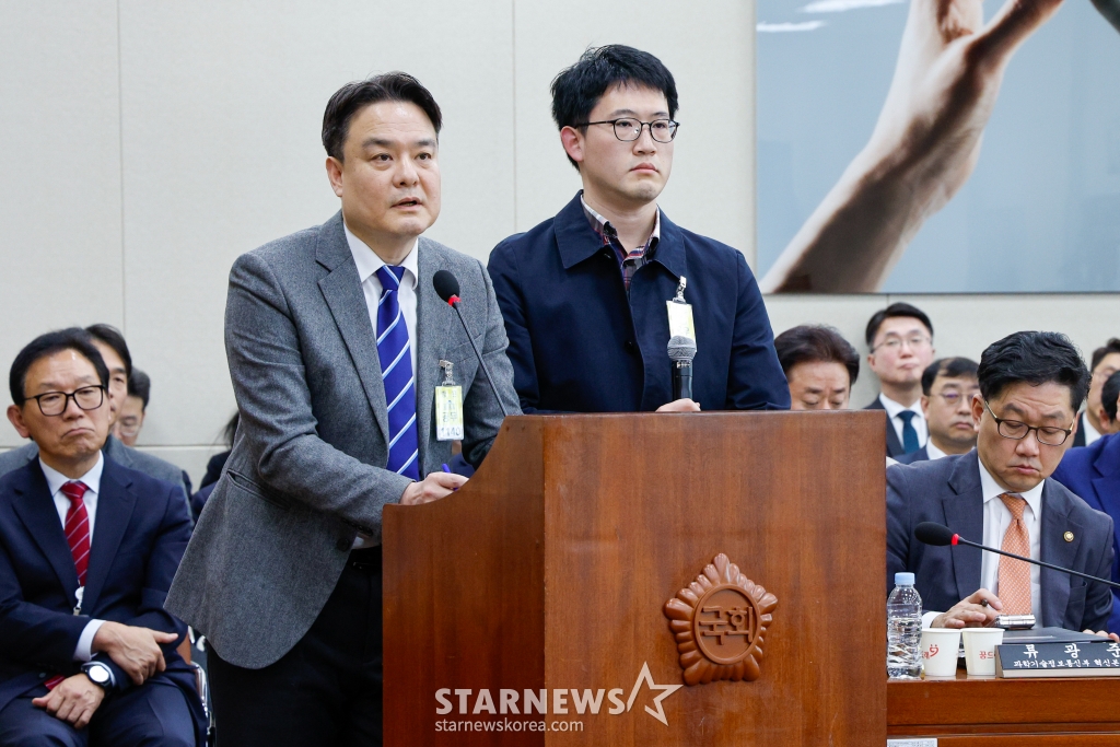 (서울=뉴스1) 안은나 기자 = 장경식 방송통신심의위원회 강원사무소 소장(왼쪽), 김종인 직원이 5일 서울 여의도 국회에서 열린 제423회 국회(임시회) 제1차 과학기술정보방송통신위원회 전체회의에 출석해 최민희 위원장의 류희림 방심위원장 방미 관련 현안 질의에 답하고 있다. 2025.3.5/뉴스1 Copyright © 뉴스1. All rights reserved. 무단 전재 및 재배포, AI학습 이용 금지. /사진=(서울=뉴스1) 안은나 기자