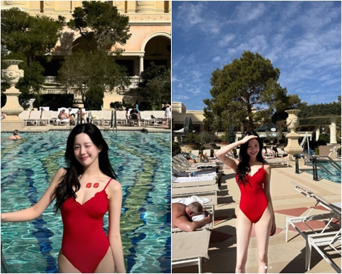 이유비는 5일 자신의 개인계정에 미국 라스베가스에의 한 호텔 수영장에서 찍은 사진을 여러장 게재했다.