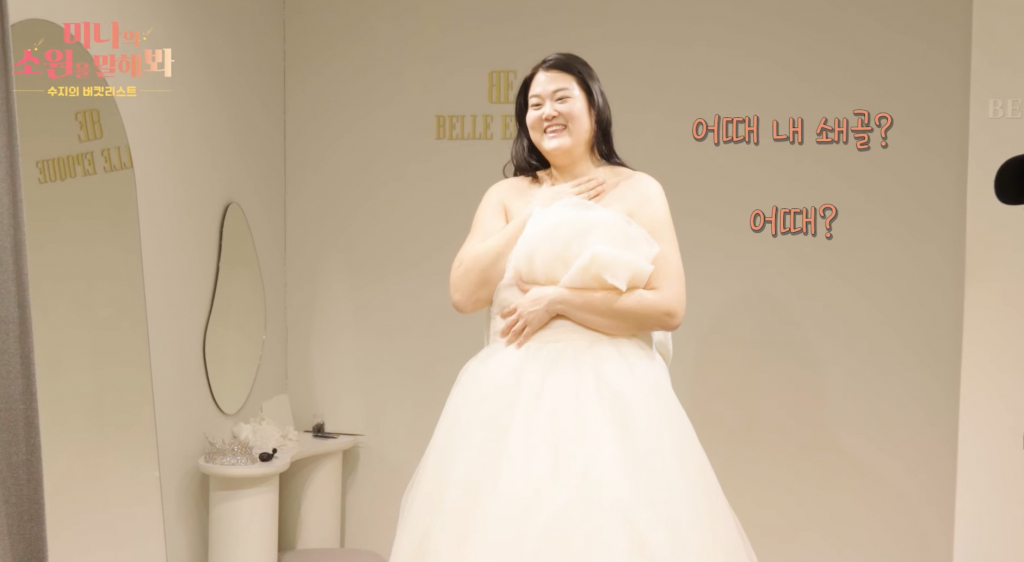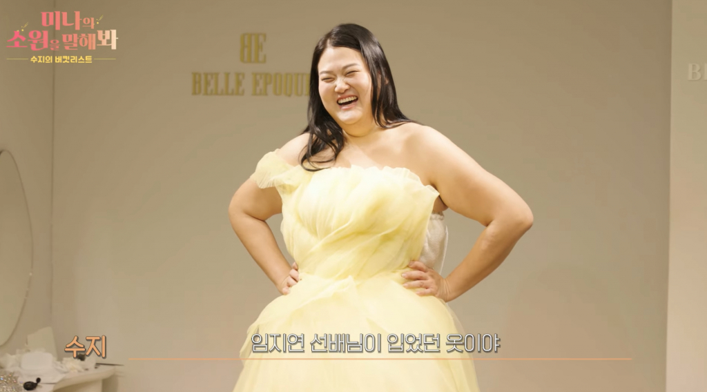 가수 미나 시누이 박수지가 57kg 감량에 성공한 이후 드레스를 입고 근황을 전했다.