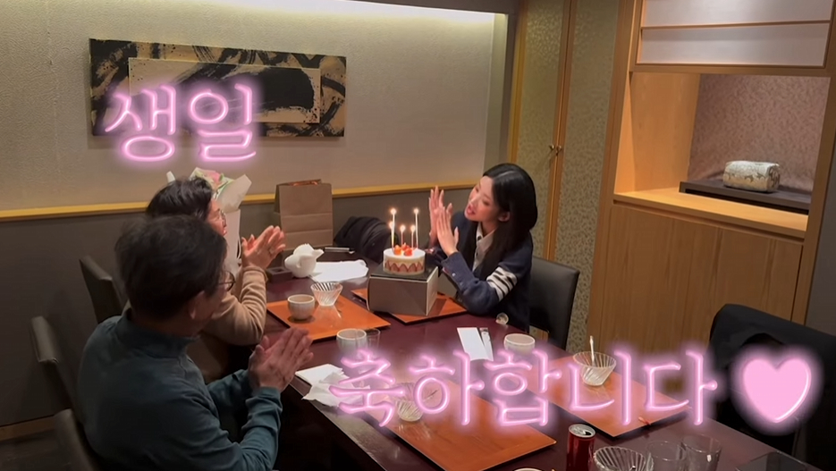 이후 최준희는 남자친구와 부산 광안리에 위치한 한 대게집에서 남자친구 부모님도 함께 식사했다. 최준희는 깜짝 케이크를 받고 "진짜 취향저격 케이크를 사왔네. 미쳤구만 진짜"라고 반응했다.
