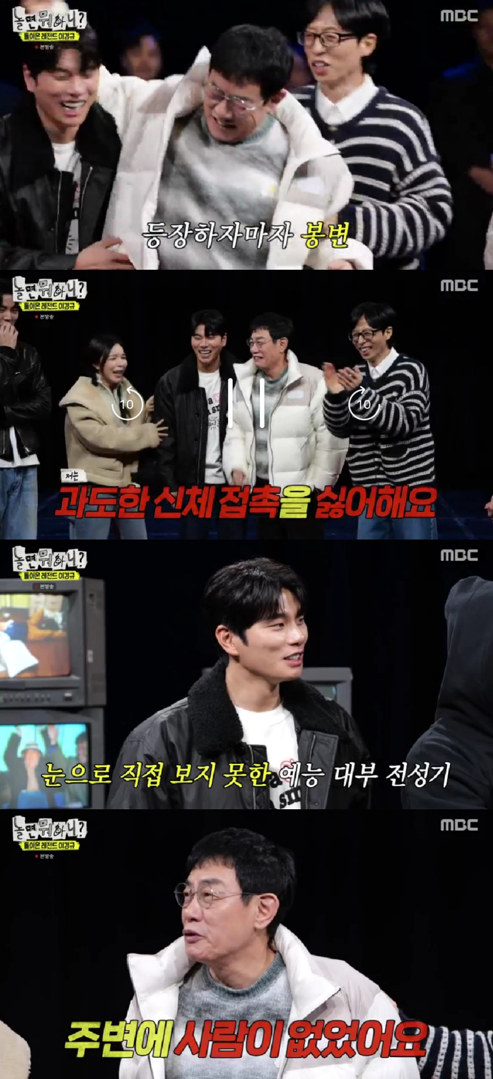이날 이경규가 등장하자, 이이경은 격하게 환영했고, 하하는 "너 예전이었으면 뺨 맞았다"고 했고, 이경규는 "과도한 신체 접촉을 싫어한다"고 말했다.