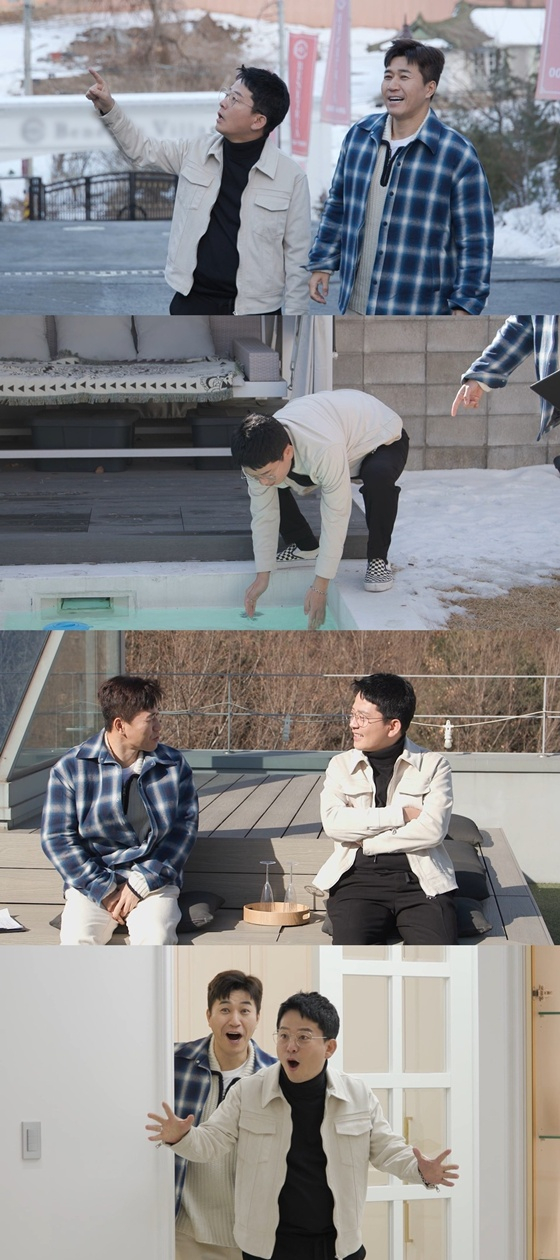 두 사람은 신혼부부의 설렘을 제대로 자극하는 수영장과 북한산 뷰를 보장하는 옥상을 갖춘 주택부터, '골프 러버'인 두 사람의 취향을 제대로 저격하는 옵션을 갖춘 집까지 구경하며 연신 환호했다. 넷플릭스 '더 글로리' 시리즈 속 재벌 전재준(박성훈 분)이 살던 단지까지 찾은 두 사람은 집안에 구비된 엘리베이터와 히노끼탕을 보고 놀라움을 감추지 못했고, 스튜디오에서도 역대급 호응이 쏟아졌다. '옵션 끝판왕' 집을 구경하던 김준호는 "여기는 결혼 약속을 안 잡아도 결혼하겠다"라며 벌어진 입을 다물지 못했다. 김준호와 김종민은 이내 서로 계약 희망 의사를 밝히며 '신혼집 계약 오픈런'을 예고했다는 후문이다. 예비 신랑 김종민과 김준호가 픽한 신혼집은 방송을 통해 확인할 수 있다.