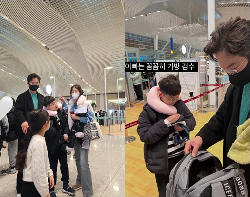 이하정은 지나 8일 자신의 개인 계정에 여러 장의 사진을 게재했다. 사진 속에는 정준호 이하정 부부가 아들을 배웅하는 모습이 담겼다.