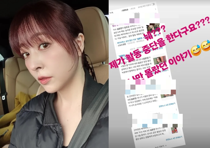 가수 겸 배우 심은진이 자신의 활동 중단 소식에 놀라워했다.