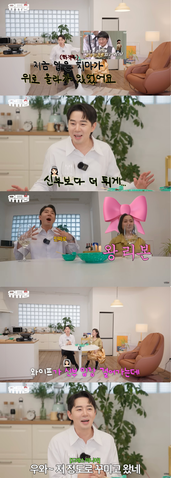 붐은 "내 결혼식 때 박나래가 입은 치마가 위로 올라가 있었다. 신부보다 더 튀었다. 리본이 엄청 컸다. 그래서 '우와, 저 정도로 꾸미고 왔네'라고 생각했다"며 박나래의 하객룩을 설명했다.