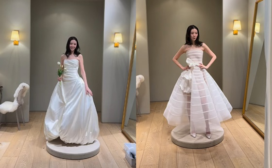 모델 아이린이 5월 결혼을 앞둔 가운데 웨딩드레스 고르기에 한창이다