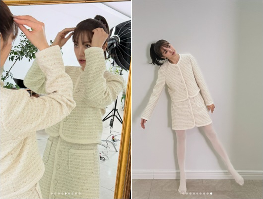 공개 된 사진 속 윤은혜는 화이트 투피스를 차려입고 포즈를 취하고 있다. 미니스커트에 화이트 스타킹을 매치한 윤은혜는 완벽한 각선미를 자랑한다.