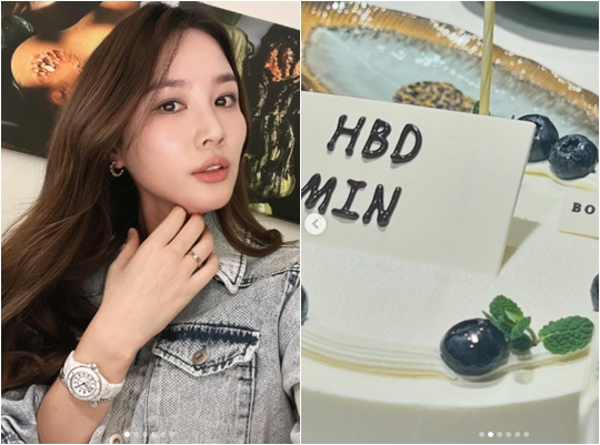사진 속에는 "민"이라는 이름이 적힌 케이크와 두 사람이 함께 즐긴 와인, 분위기 있는 곳에서 미모를 뽐내는 진아름의 모습 등이 담겨 있다.