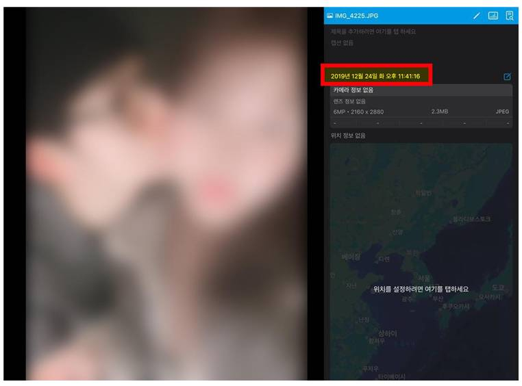 또한 가세연이 2025년 3월 12일 공개한 또다른 사진은 2019년 12월 24일 크리스마스 이브를 맞아 두 사람이 촬영한 것으로, 해당 사진에 대한 메타데이터(단락 하단)를 확보하고 있습니다. 3월 13일에 공개한 사진 역시 같은 의상을 입은 것에서 확인할 수 있듯 같은 날 촬영한 것입니다. 가세연에서 김수현씨가 김새론씨와 미성년자 시절부터 사귀었다는 근거로 내세운 모든 사진들은 김새론씨가 성인이 된 시절에 촬영한 것입니다. 가세연에서 반복적으로 주장하는 "2016년에 촬영된 사진"은 존재할 수 없습니다. 당시 두 사람은 교제하지 않았기 때문입니다.
