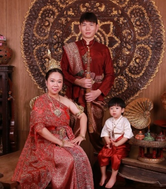 공개된 사진 속에는 세 가족의 가족사진이 담겼다. 특히 이들은 태국 전통 의상을 입고 완벽히 현지화된 모습을 뽐내 눈길을 끌었다. 이 가운데 아들 준범이가 사랑스러운 비주얼을 자랑했다.