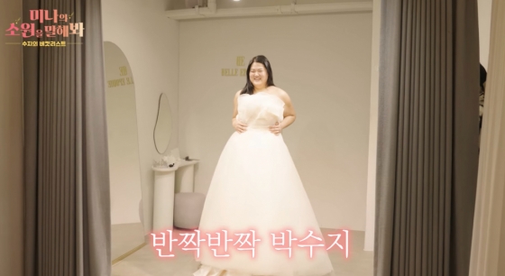 가수 미나 시누이 박수지가 57kg 감량에 성공한 이후 드레스를 입고 근황을 전했다.