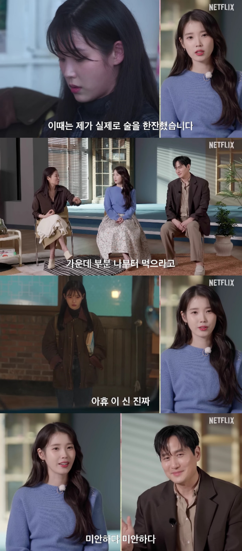 가수 겸 배우 아이유가 '폭싹 속았수다' 속 술을 마시고 촬영했던 장면을 밝혔다.