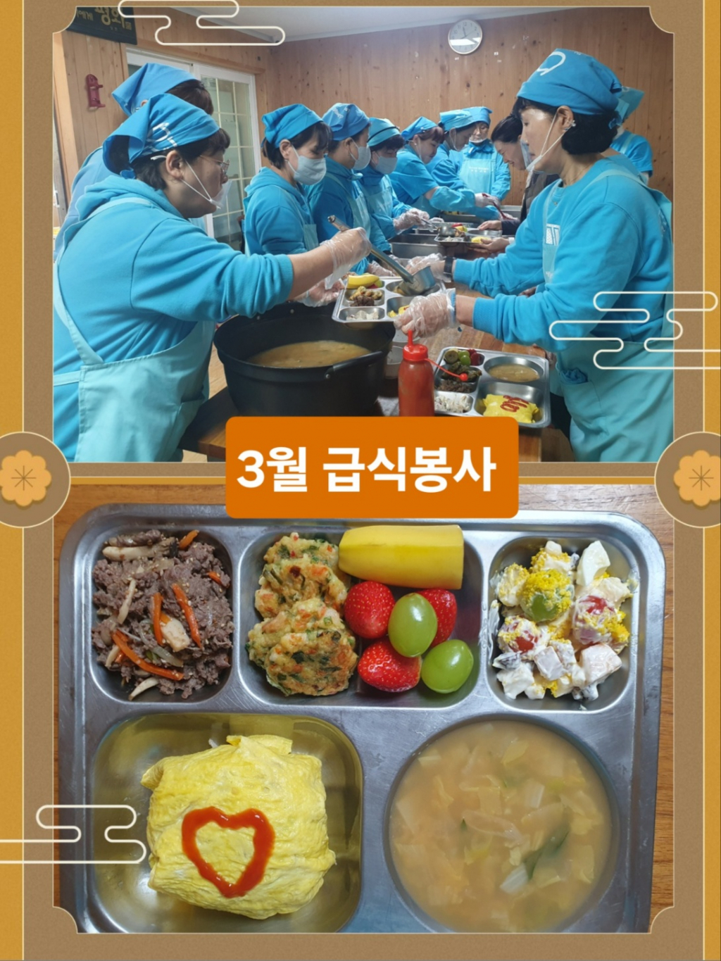 이달의 급식은 오므라이스, 사골 배추된장국, 불고기, 새우 야채 전, 과일샐러드를 조리해 배식했으며 캔디류, 과자류, 우유, 음료수 등 간식을 비롯해 바나나, 딸기, 샤인 머스캣 등 과일과 한우(양지 사골) 21kg을 제공했다. 총후원금액은 180만 원이다.