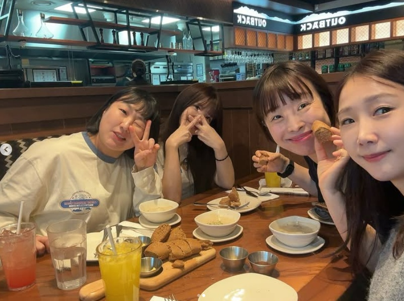 사진 속 이수지는 오나미, 박소영 등과 식사하며 카메라를 향해 익살맞게 윙크하는 모습을 보였다.