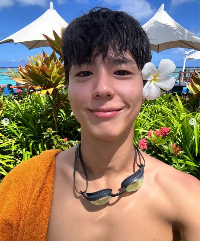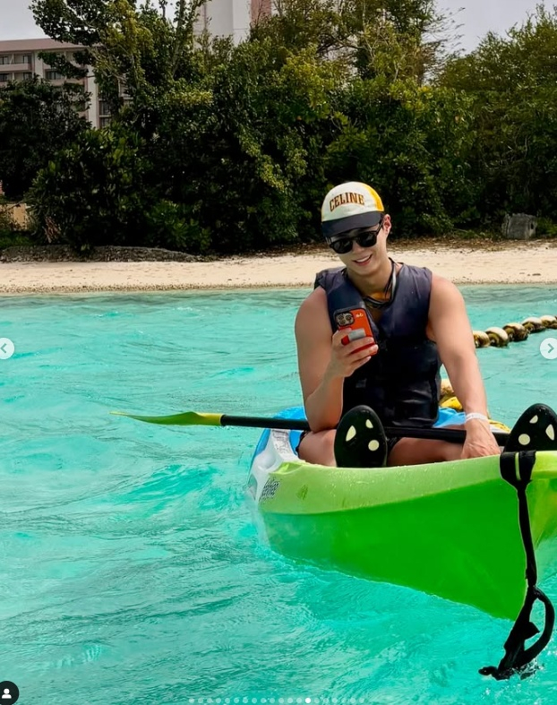 사진 속 박보검은 괌에서 여가시간을 즐기는 모습이었다. 그는 해안 풍경 속 수영과 보트를 탄 모습으로 보는 이들에게 힐링을 선사했다.