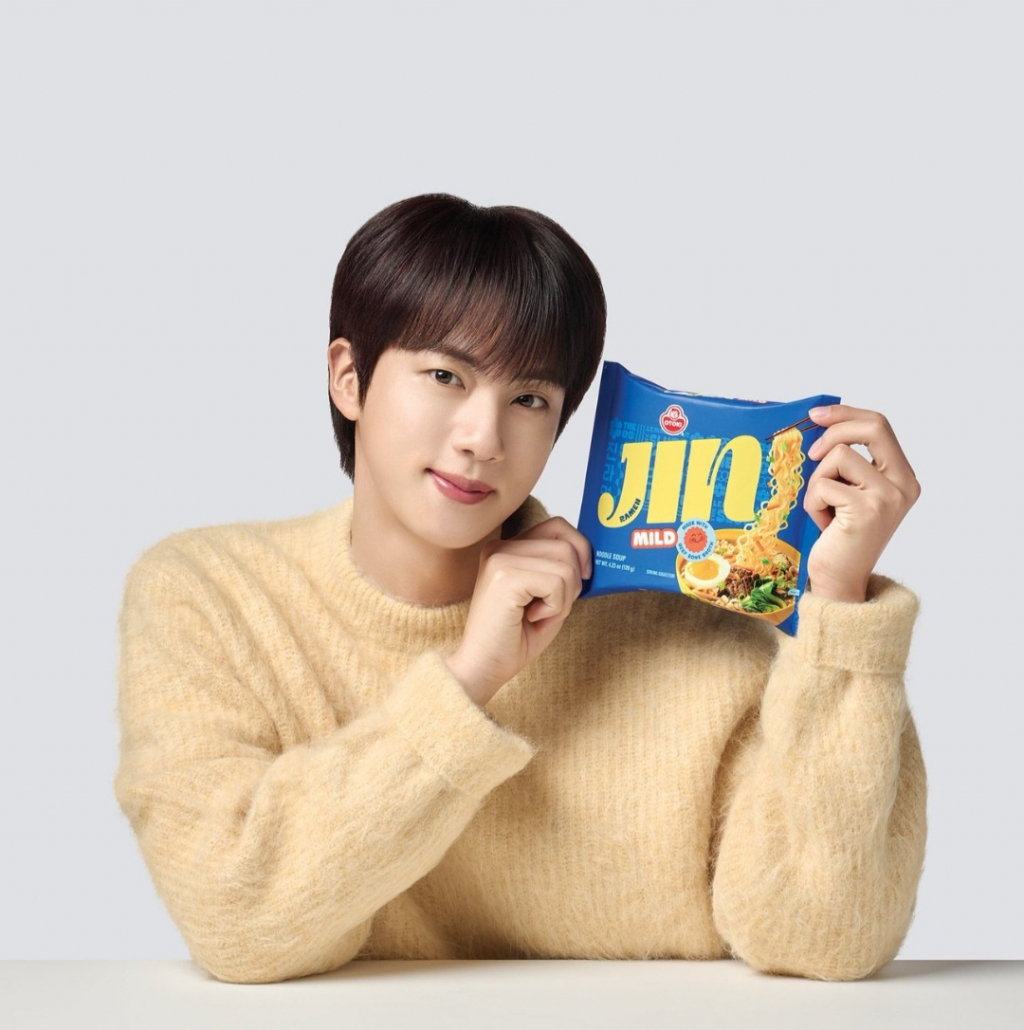 지난 2022년 진라면 모델에 이어 최근 진의 오뚜기 진라면 글로벌 캠페인 영상이 공개됐다. 지난 13일 공개된 '진짜 Love' 글로벌 캠페인 영상은 '미의 남신' 진의 모습으로 압도적인 전 세계 반응을 이끌고 있다.