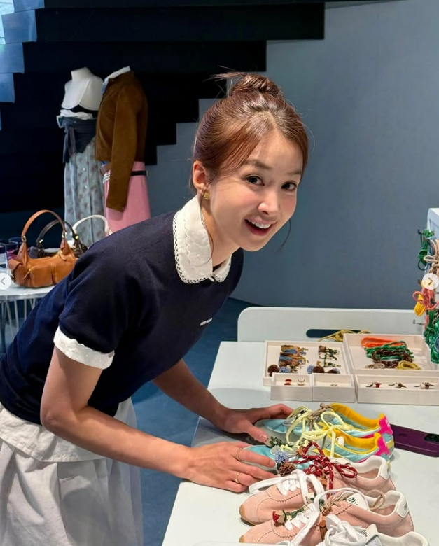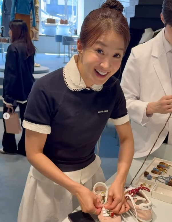 사진 속 이시영은 명품 브랜드 미우미우 행사에 참석해 운동화 꾸미기를 하며 즐거워하는 모습이었다.
