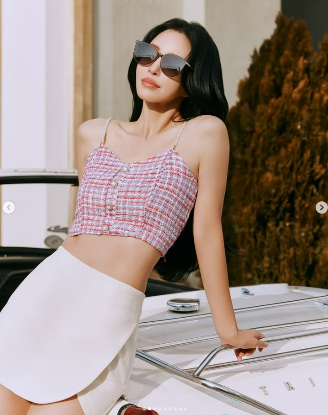 그는 테니스복, 블랙 슬림 원피스 등 다양한 착장을 통해 몸매를 과시했다.