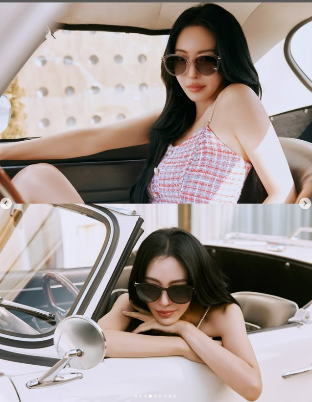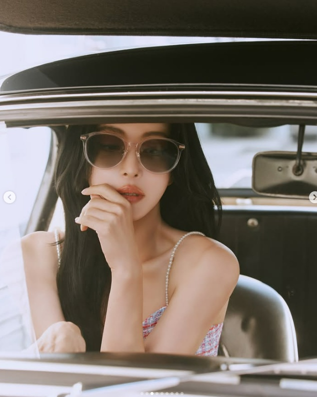 사진에는 한예슬이 럭셔리카 위에 앉아 여유로운 자태를 선보였다.