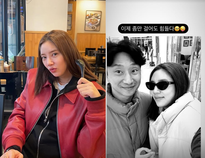 손담비는 23일 남편 이규혁과 함께 찍은 사진을 공개하고 "이제 좀만 걸어도 힘들다"라고 전했다.