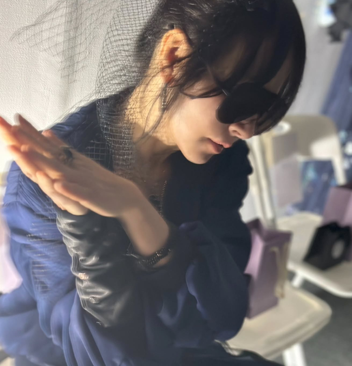그는 "사람들이 알아보는 압박을 선글라스로 감추고 몇 장 사진을 찍어 올린다. 헤어도 만질 시간이 없어 번으로 묶고 예전 카티아조가 만들어 준 검정망을 리본으로 묶어 핀으로 고정했다"면서 "집에서 가까웠고 잠깐의 외출이었지만 두통이 나았다. 콧바람 치료 덕인가?"라고 했다.