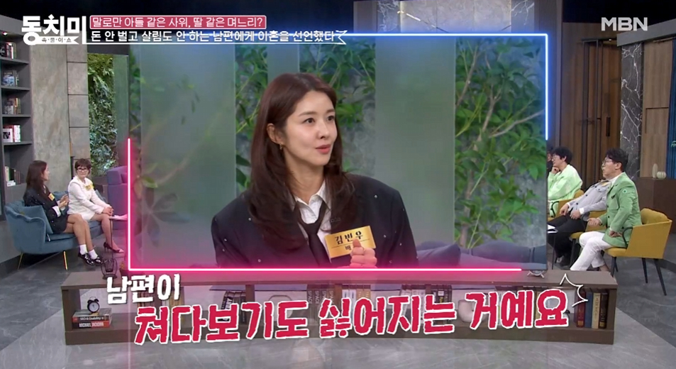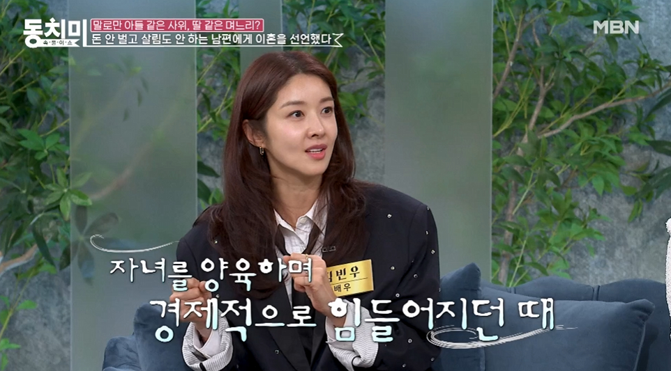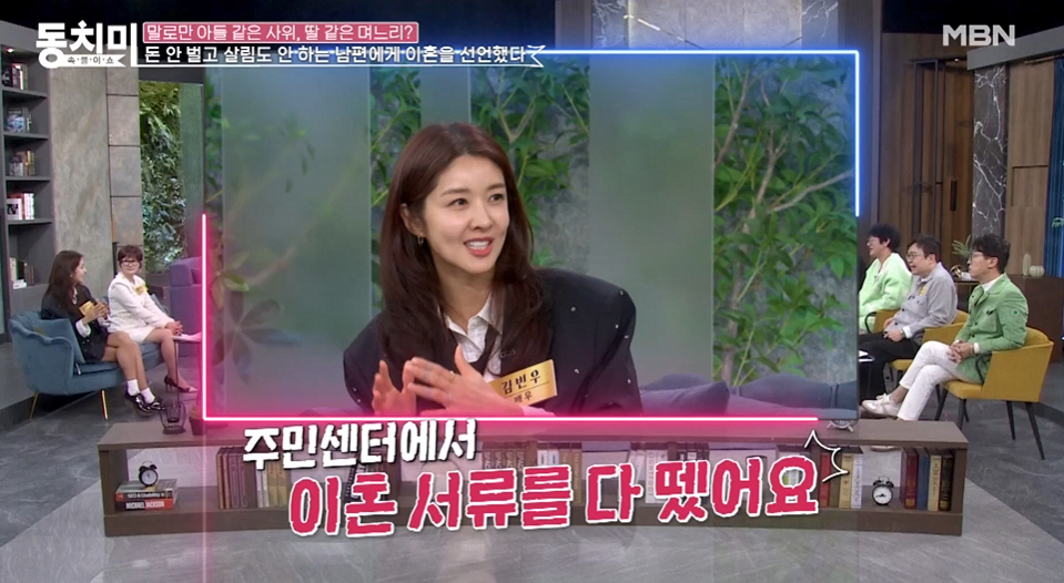 김빈우는 22일 방송된 MBN '속풀이쇼 동치미'에 출연해 이혼 위기까지 겪었던 비화에 대해 밝혔다.