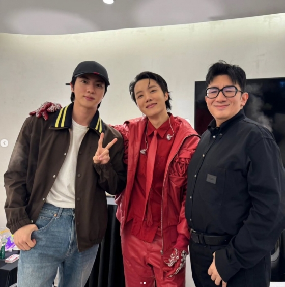 방시혁 하이브 의장이 방탄소년단 제이홉과의 투샷을 통해 다시금 늘씬해진 비주얼을 공개했다.
