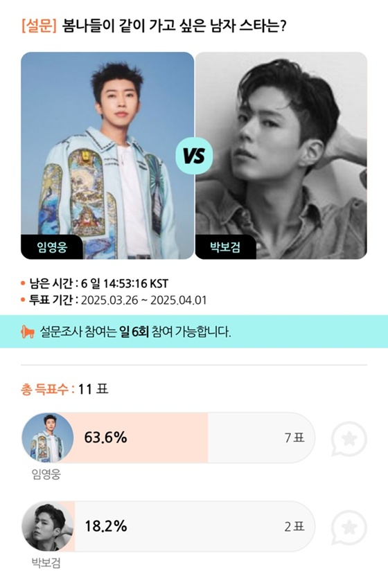 모바일 아티스트 종합 콘텐츠 앱 스타폴(STARPOLL)은 3월 26일부터 4월 1일까지 '봄나들이 같이 가고 싶은 남자 스타는?'이라는 주제로 설문 조사를 진행한다.