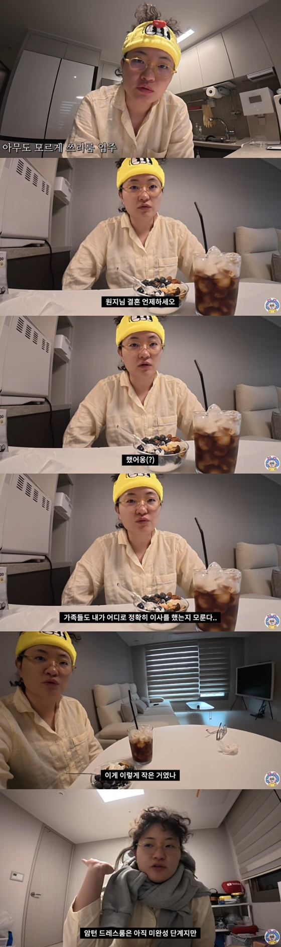 영상에서 원지는 "아무도 모르게 쓰리룸으로 입주했다. 반포장 이사를 했는데 죽을 뻔했다"며 "원룸에서 투룸으로 갈 때 캐리어 몇 번 왔다 갔다 하고 이사를 끝냈다. 그때 생각하고 (반포장) 했더니 죽을 뻔했다"고 말했다.