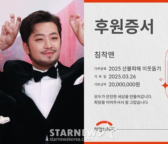 침착맨 측은 "이번 산불로 피해를 입으신 모든 분들께 깊은 위로를 전하며, 조속한 회복을 진심으로 기원합니다. 작은 마음이나마 기부로 함께합니다"라고 전했다.